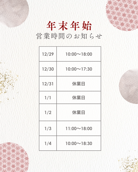 年末年始の営業時間のお知らせ